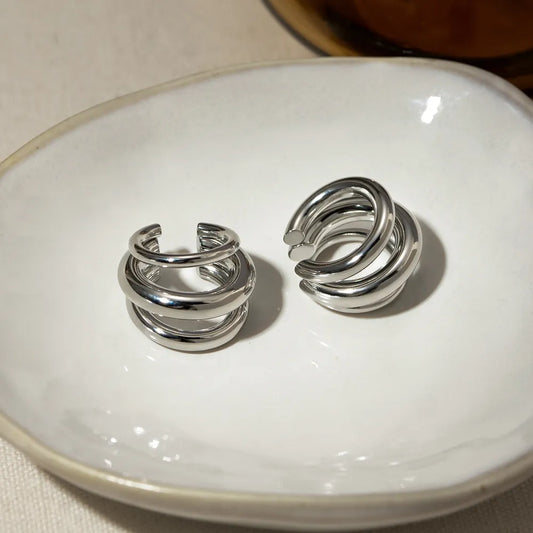 Sold outStainless Steel Inlaid Zircon C-Hoop Earrings