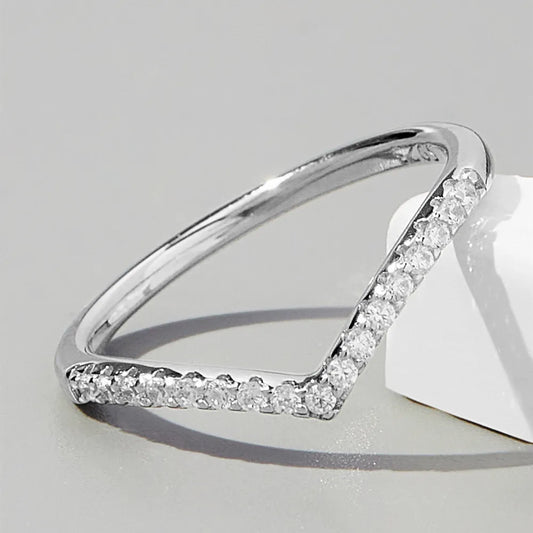 Sold outV Shape Inlaid Zircon 925 Sterling Silver Ring