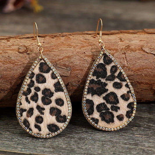 Sold outZircon PU Leopard Teardrop Earrings