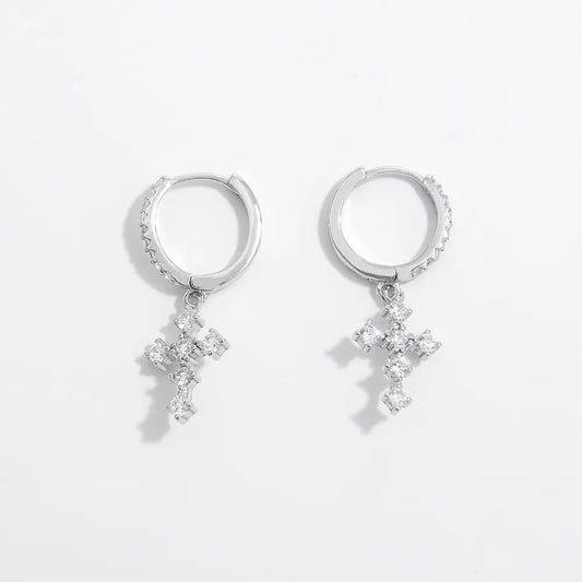 Sold out925 Sterling Silver Inlaid Zircon Cross Dangle Earrings