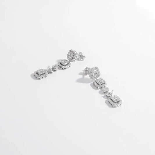 Sold out925 Sterling Silver Inlaid Zircon Geometric Dangle Earrings